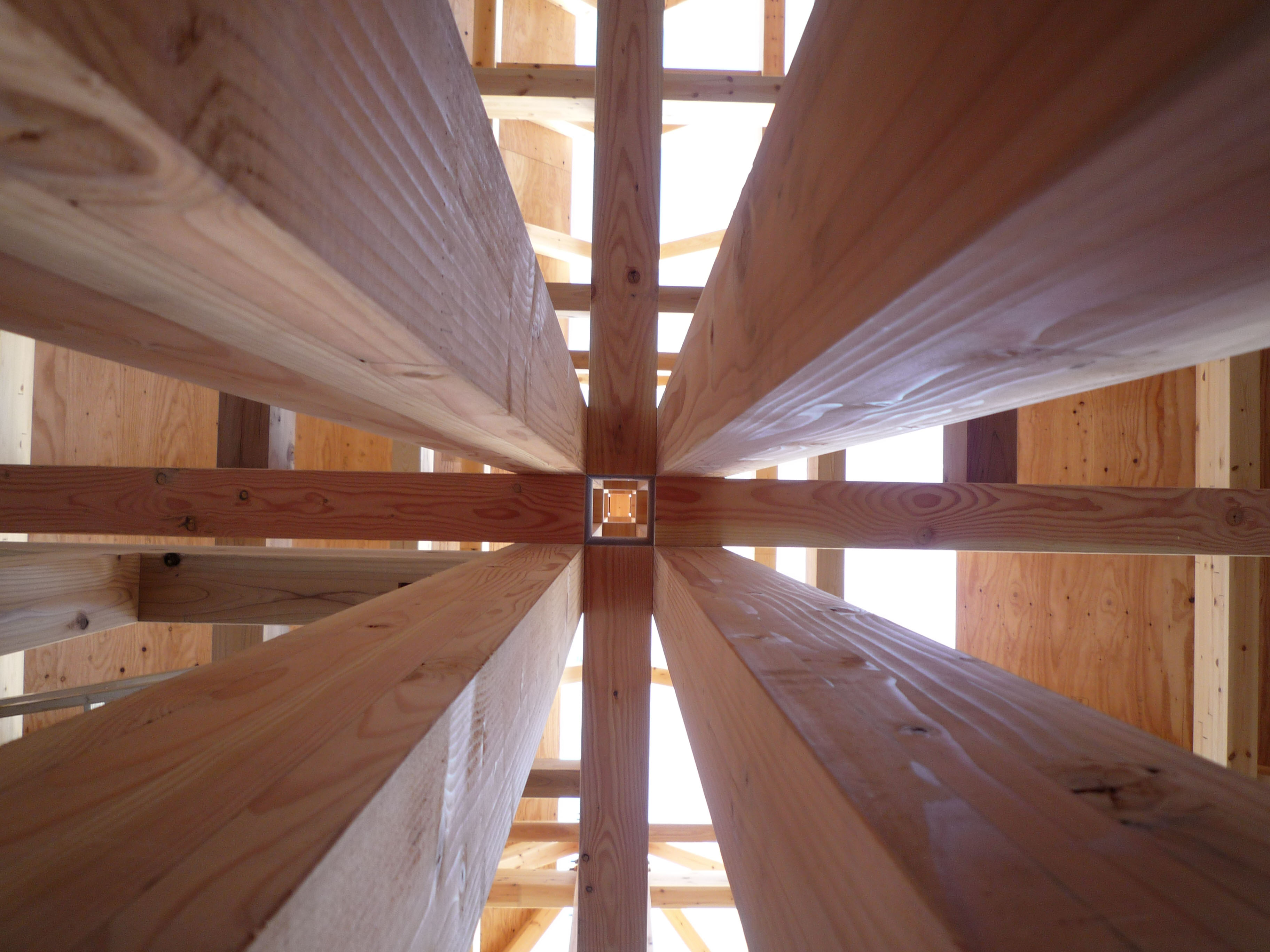 集まって出来上がる、中空で見通せるけど大黒柱のような不思議な柱になりました。