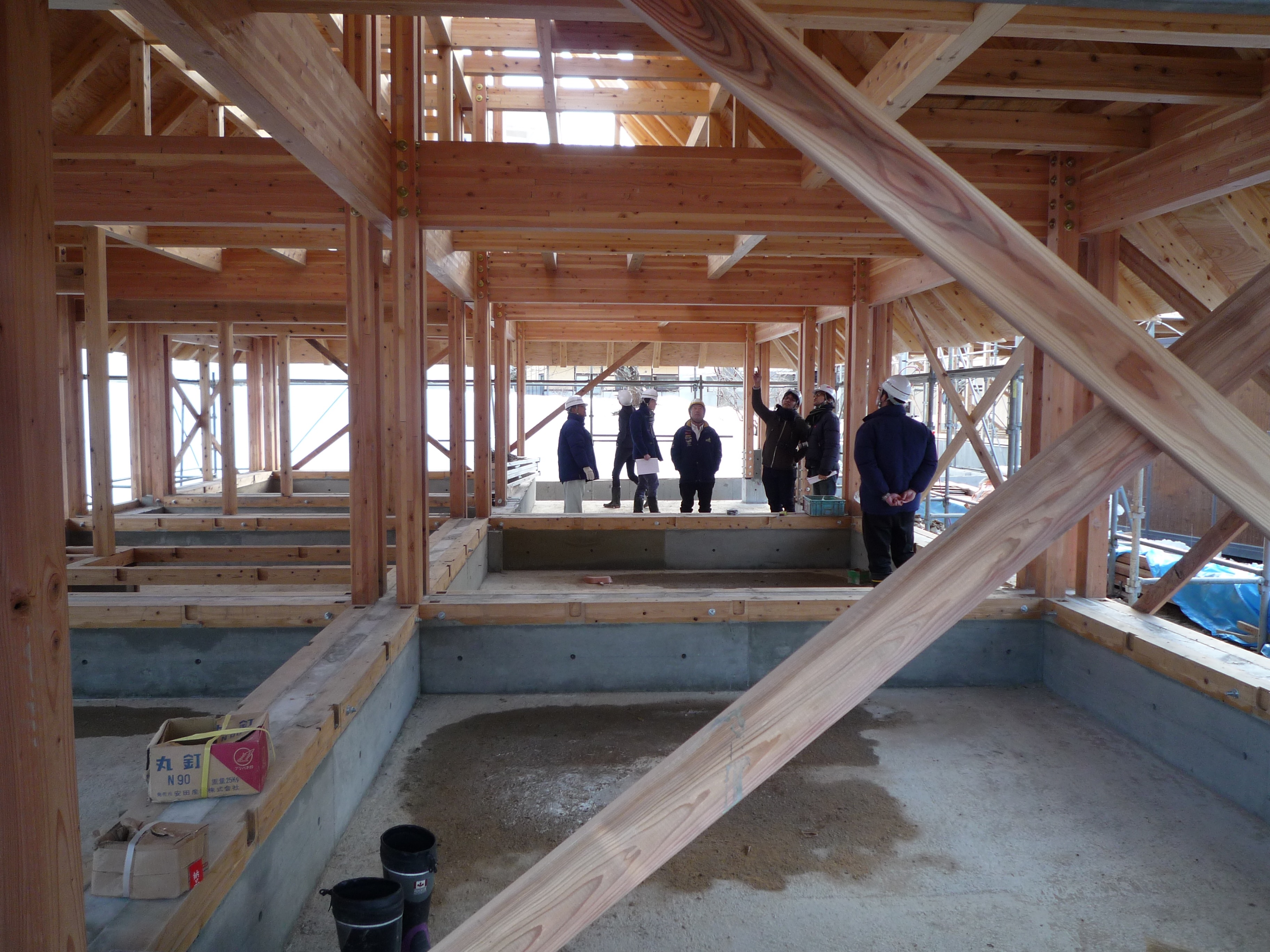 集会所の4本組柱の構造実験を協力してくださいました東京工業大学の坂田先生が現場に来てくださいました。